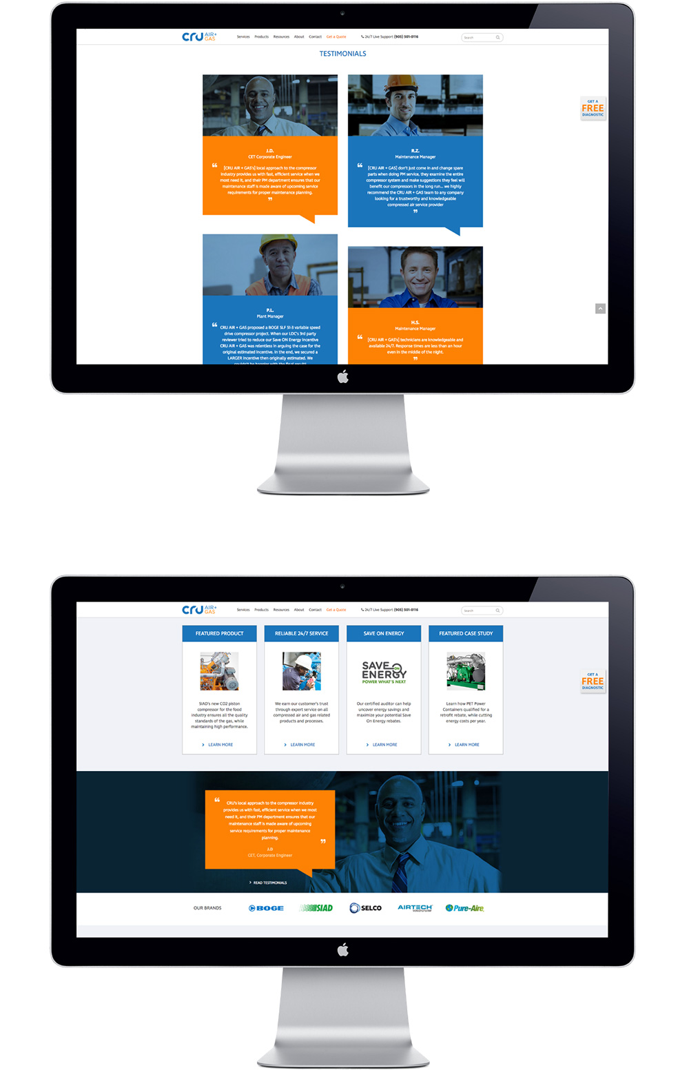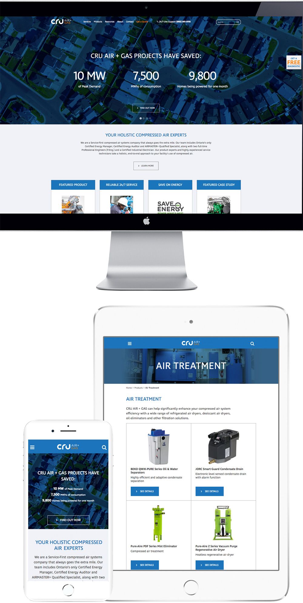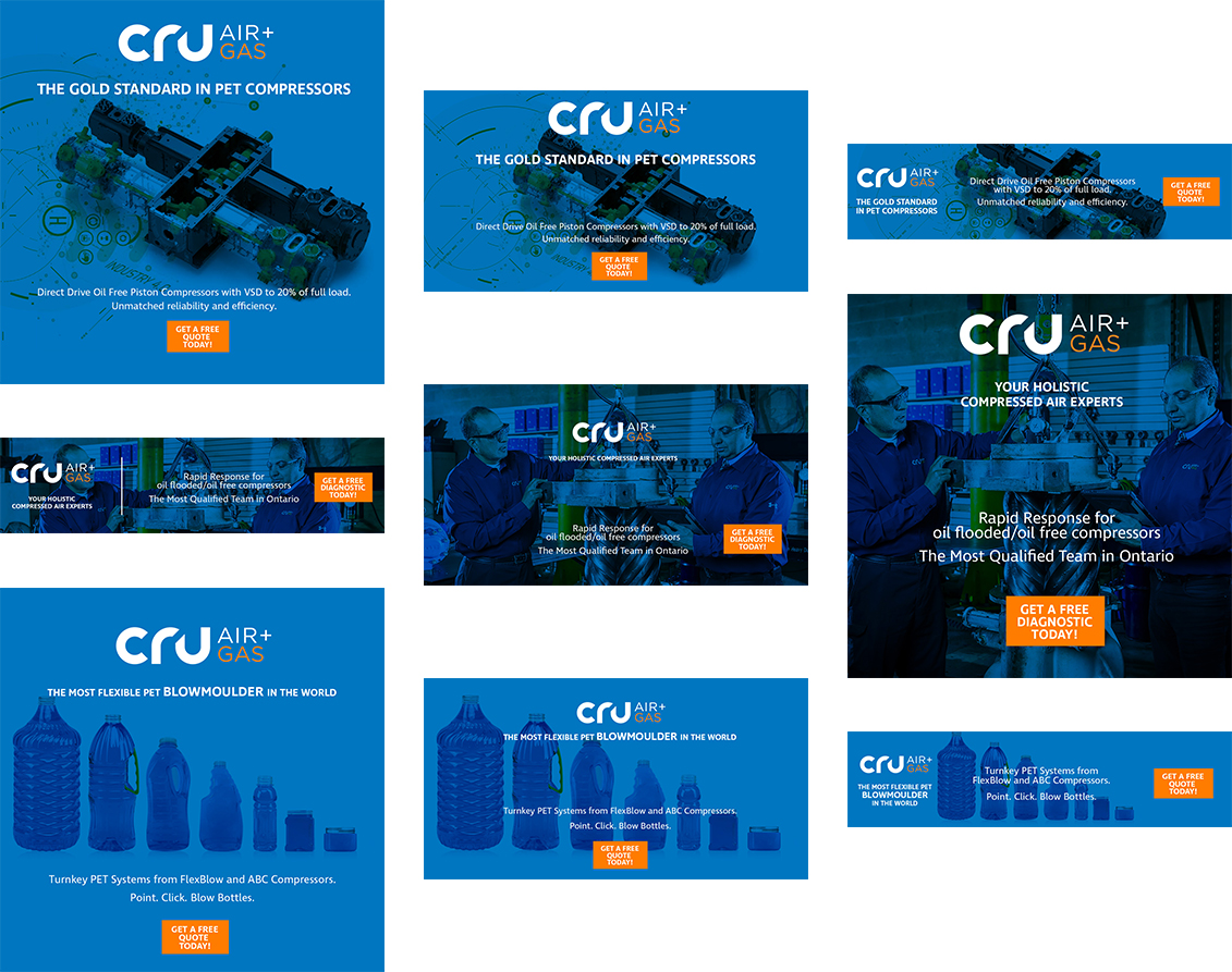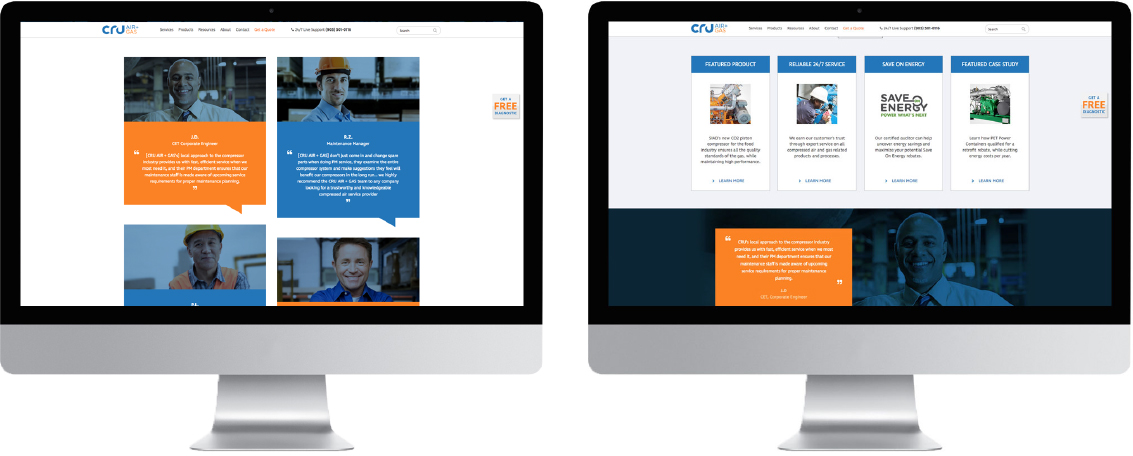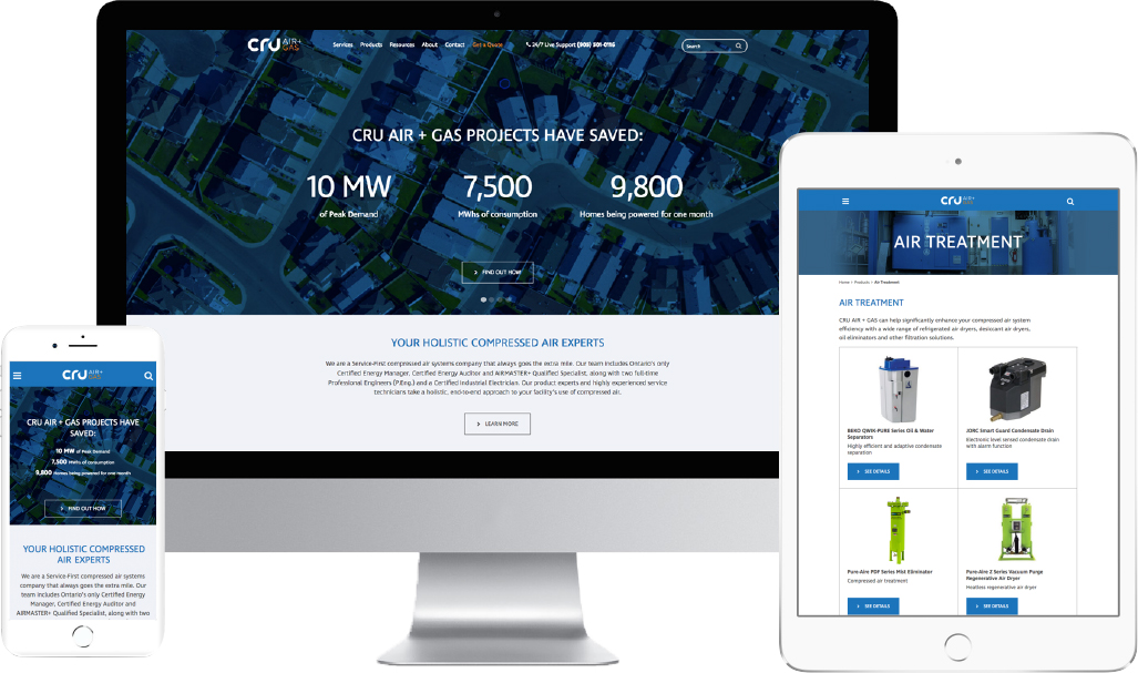 Established in 2000, CRU Air + Gas (formally known as Compressors aiR Us) specializes in the sale and service of industrial air compressors, dryers, and related components. CRU provides cradle to grave support, with 24/7 on-call technicians. MHz was retained to develop CRU’s brand identity (logo and tagline) and website from the ground up. The brand design involved an iterative design process focused on core brand pillars established during the Brand Strategy Development process. The design for the new website stemmed from the thinking around the new brand strategy.