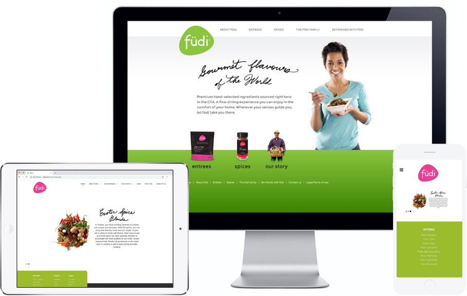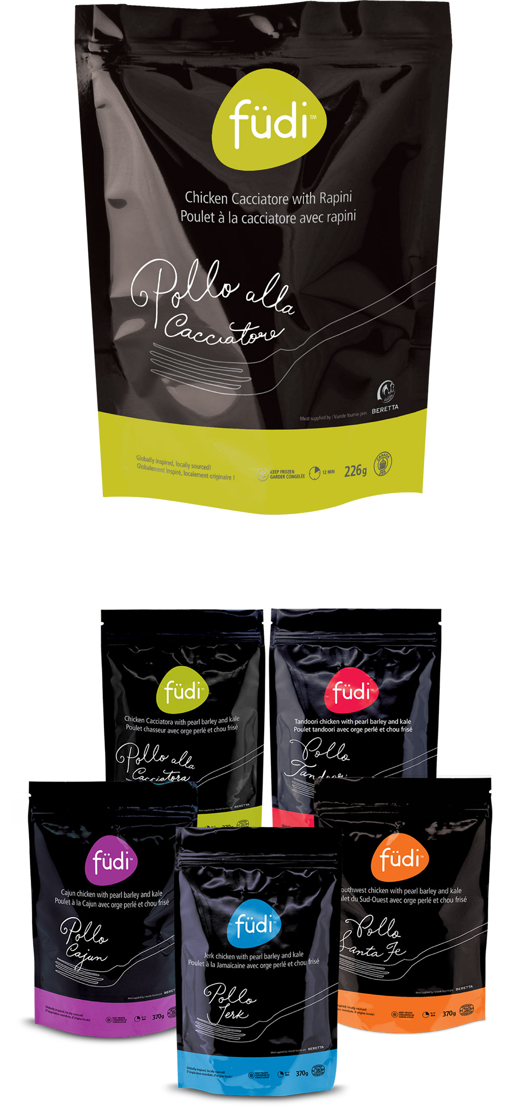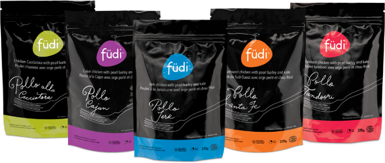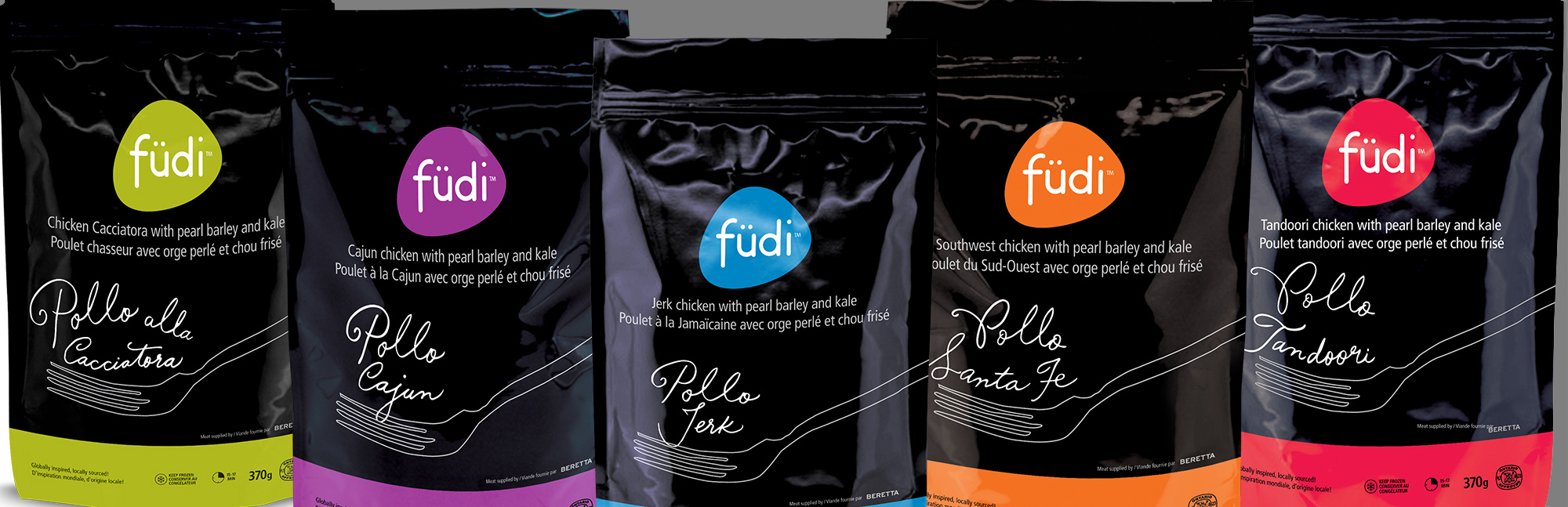 The brand name füdi was then selected, validated through research, and trademarked. Packaging for the full line was then prepared, followed by marketing material and the development of a website.