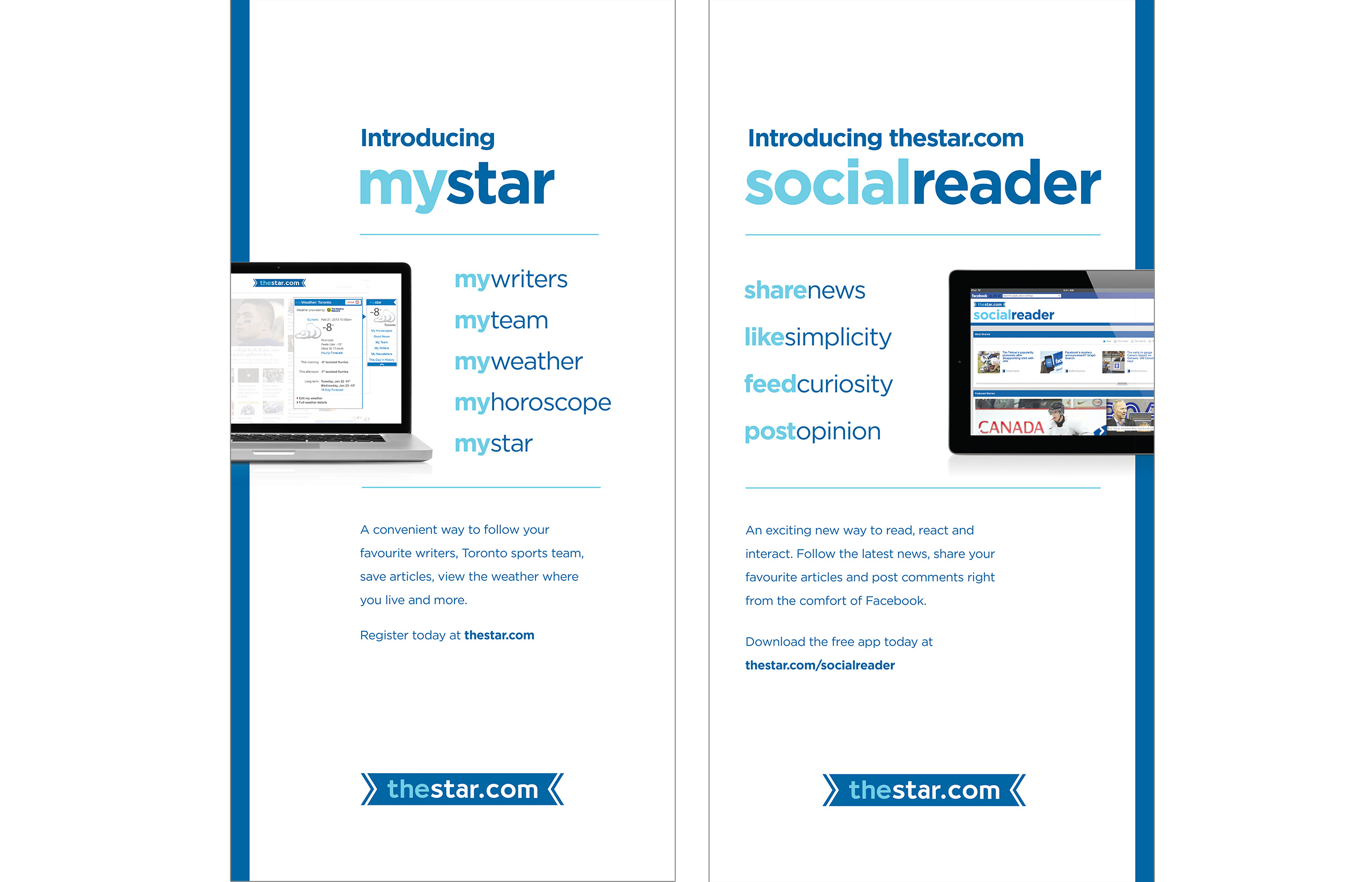 The Toronto Star has adapted to the changing times and needs of its readers. As an example of this, they invested strongly in their online presence through thestar.ca, mobile web, and a Facebook page. To support this, MHz built a program providing strategy, creative and production services to create a single-minded customer experience and engagement campaign that was then leveraged not only across four different aspects of the re-launch, but also across both digital and print.